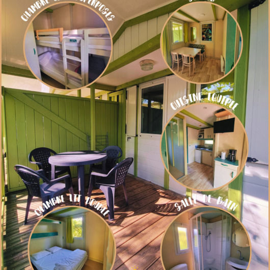 En couple, en famille, en groupes, le Camping de la Marjorie vous propose des locations de chalets de 2 à 7 personnes, tous équipés de toilettes et salle de bain (douche), cuisine, chambres, séjour et terrasse.