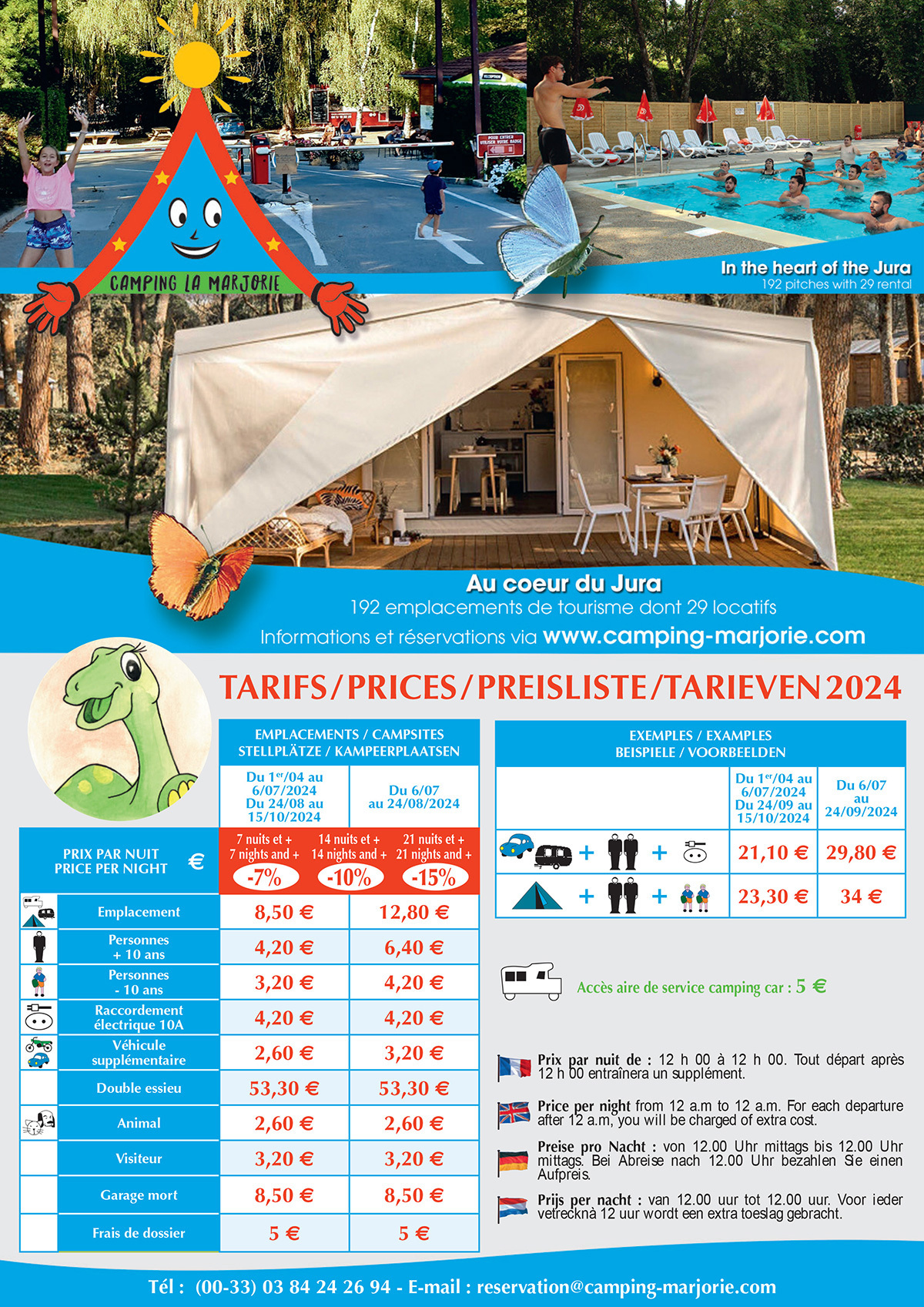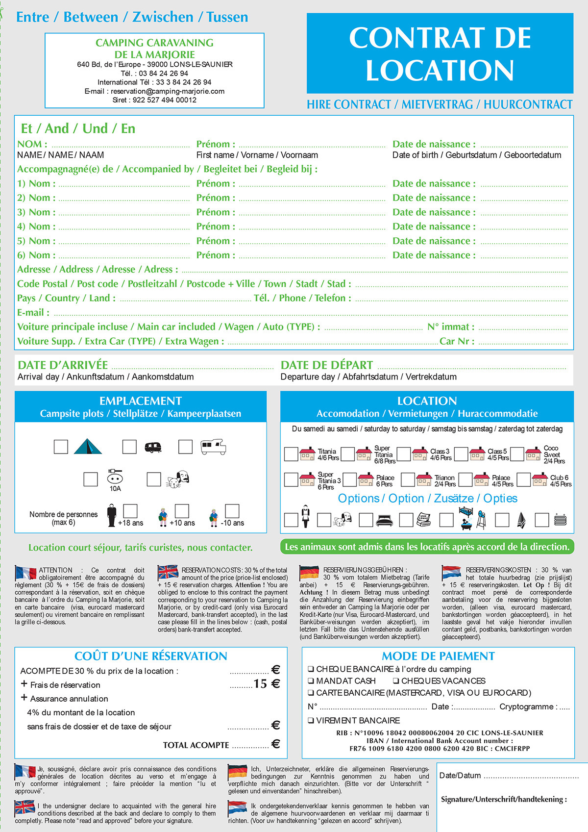 Klik op de link om de prijs van de kampeerplaatsen en vakantieverblijven, het huurcontract en de boekingsvoorwaarden te downloade